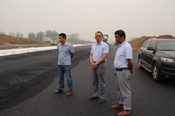 9月22日上午,公司總經(jīng)理孔德穩(wěn)在工程部、辦公室等人員的陪同下,驅(qū)車分別來到信陽職業(yè)技術(shù)學(xué)院、羊山新區(qū)工業(yè)大道,檢查指導(dǎo)路面施工情況。在職業(yè)技術(shù)學(xué)院,孔總與項(xiàng)目部人員詳細(xì)了解三個標(biāo)段的施工進(jìn)展情況,目前存在的困難和問題。當(dāng)項(xiàng)目部陳志明經(jīng)理介紹到二、三標(biāo)路段水泥穩(wěn)定碎石已做完,現(xiàn)正抓緊進(jìn)行涵管鋪設(shè),后面進(jìn)入三標(biāo)人行道建設(shè)時,孔總對項(xiàng)目部的工作給予肯定。隨后,孔總一行又來到羊山新區(qū)家居產(chǎn)業(yè)小鎮(zhèn)工業(yè)大道,檢查瀝青路面施工情況。油面分公司漆昌輝經(jīng)理、王有志經(jīng)理分別向孔總介紹了近期工業(yè)大道油面鋪設(shè)進(jìn)度,并表示在天氣陰雨不斷的情況下,油面分公司組織廣大員工起早貪黑,加班加點(diǎn),不怕疲勞,連續(xù)作戰(zhàn),搶天氣、抓進(jìn)度,力爭在中秋節(jié)前完工。孔總對油面分公司這種敢打敢拼的精神給予高度贊揚(yáng)。圖為孔總分別在職院、工業(yè)大道項(xiàng)目工地檢查時的情景。